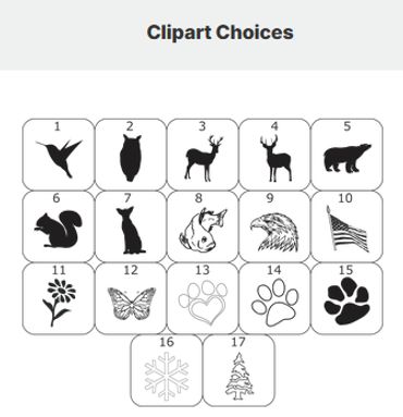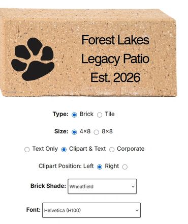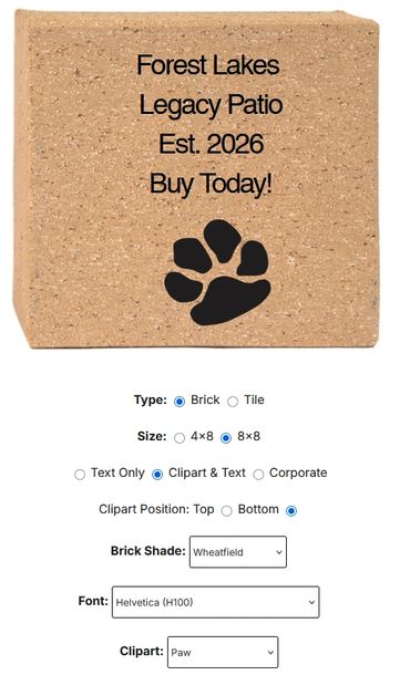 *Please be aware that only a limited number of clipart are available on the Forest Lakes Legacy Patio bricks. See the options below (also on the Forest Lakes Legacy Patio purchase page).