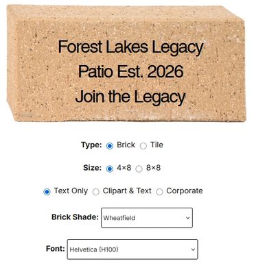 Add your brick(s) to the Patio with your families name, motto, or a quote which represents your time at Forest Lakes.
